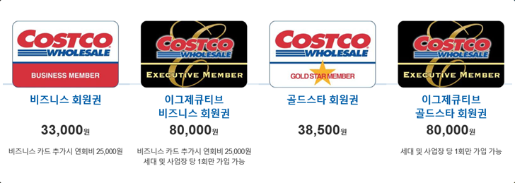 자연스레 코스트코 홀세일이 떠오르는데.. 1998년 양평점을 시작으로 국내에 진출한 코스트코 홀세일 매장은 현재 전국 17개입니다. 트레이더스가 맹추격 중이나 여전히 부동의 1위를 자리를 지키고 있습니다. 코스트코 멤버십 종류는 총 4종류, 일반 멤버십 기준으로 개인은 38,500원, 사업자는 33,000원입니다.