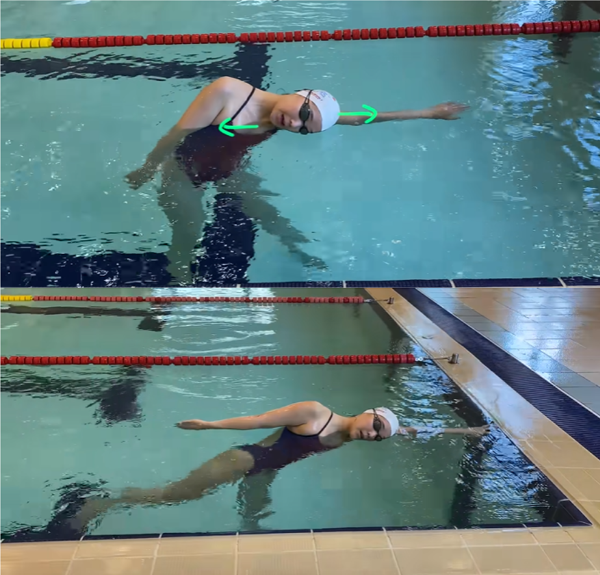배우는 단계에서 자유형 팔 동작의 가장 중요한 요소는 롤링(rolling)과 글라이딩(gliding)입니다. 물의 저항을 최소화하기 위해 어깨와 몸통, 골반까지 함께 롤링하며 반대편 팔을 앞으로 쭉 뻗는 글라이딩으로 추진력을 향상합니다.